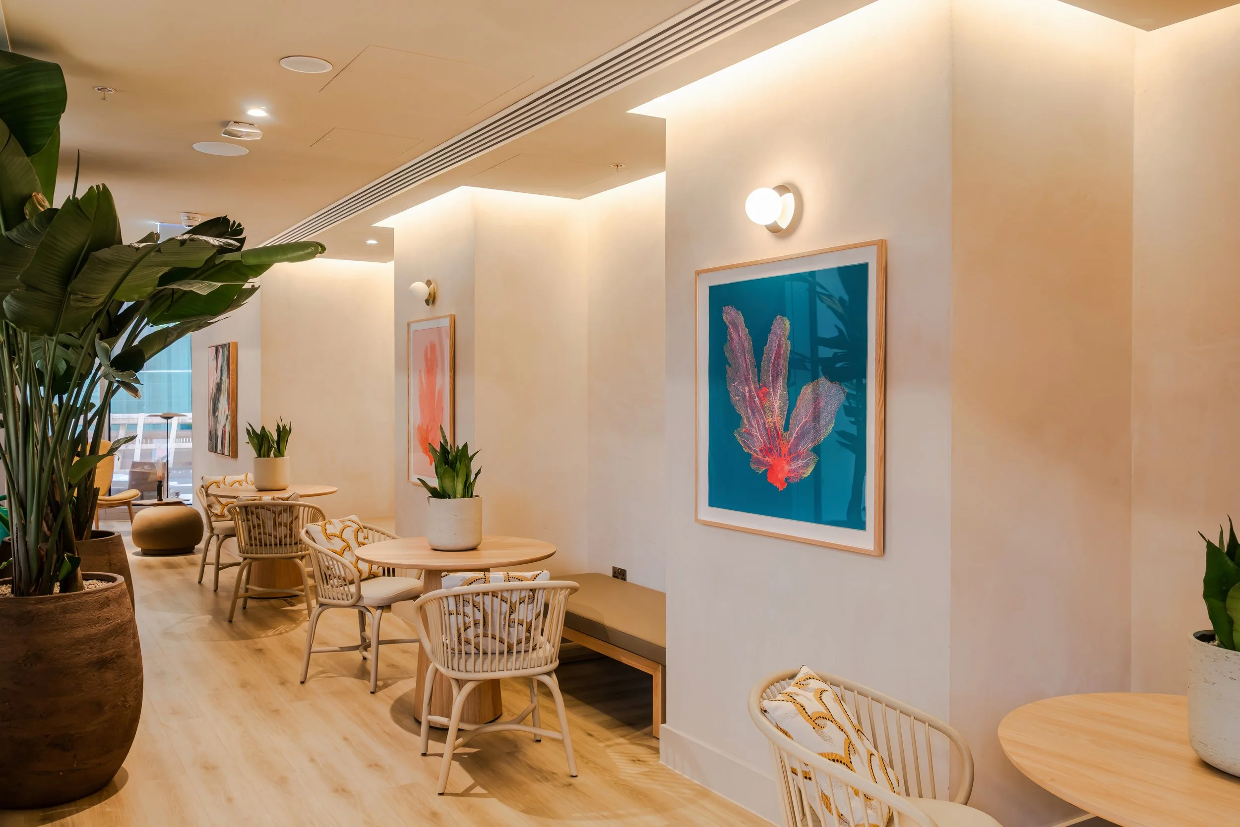 Bespoke framing of 56 artworks curated by The Art Office, installed at Chapter London Bridge, a luxury student accommodation development. The collection included works on canvas, paper, and mixed media, each requiring individually specified framing to meet both conservation needs and the interior design scheme.